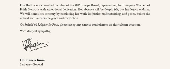 Religions for Peace International, in an official letter addressed to ...Read more...